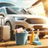 - Påføring: Sprøjt blandingen jævnt over hele bilens overflade, inklusive glas og spejle.